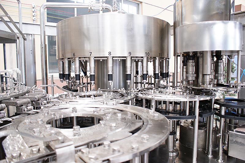 全自动水灌装机用于生产聚酯瓶、塑料瓶灌装果汁、矿泉水、纯净水等。全自动灌装机可完成洗瓶、灌装、封口等全部工序,可减少物料与外界接触时间,提高卫生条件、生产能力和经济效益。全自动水灌装设备采用新型的微压灌装,使灌装速度更快更稳定。