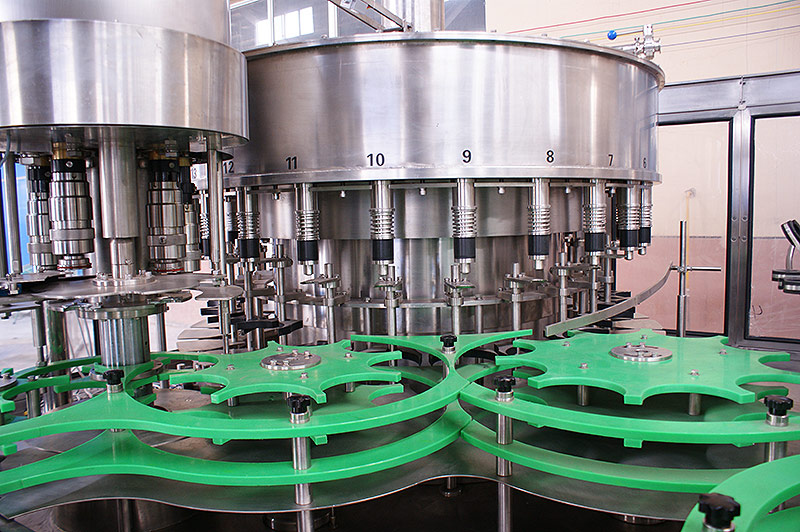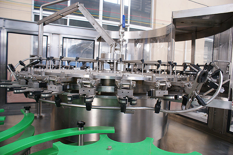 纯净水灌装机械采用了大量的新技术、新工艺、新结构,产品质量处于同行业先进水平。其特点是瓶子的颈部卡在星轮形板的卡瓶板与上形板之间,由星轮传动带动卡瓶板转动而实现瓶子的传送,从而实现全自动洗瓶、灌装、封盖三大工序的,具有瓶子磨损小、瓶型更换简单、传动准确平稳、工艺流程科学等优点。此外,本纯净水灌装设备所有与液体接触的零部件全部采用进口优质不锈钢材料或耐磨、耐臭氧、食品级工程塑料,电气系统多数选用进口元件,食品卫生条件符合国家标准,性能稳定可靠,设备故障率低,实现全自动化控制,并且有完善的售后服务,深受国内外用户普遍欢迎,是各类软饮料生产企业选择的理想灌装设备。