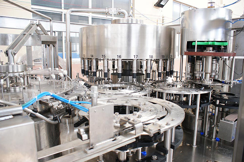 纯净水灌装设备集冲洗、灌装、旋盖为一体的全自动多功能联合机组,它适用于各种无气饮料、油醋、果酒、矿泉水、纯净水的自动冲洗、灌装、封口。