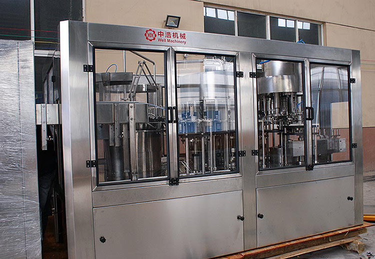 纯净水灌装设备集冲洗、灌装、旋盖为一体的全自动多功能联合机组,它适用于各种无气饮料、油醋、果酒、矿泉水、纯净水的自动冲洗、灌装、封口。